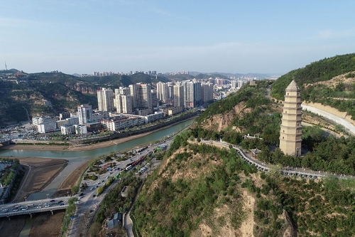 這是(shi)4月22日拍攝的延安市寶塔山(無(wu)人機照片)。新(xin)華社記者(zhe) 張博文 攝