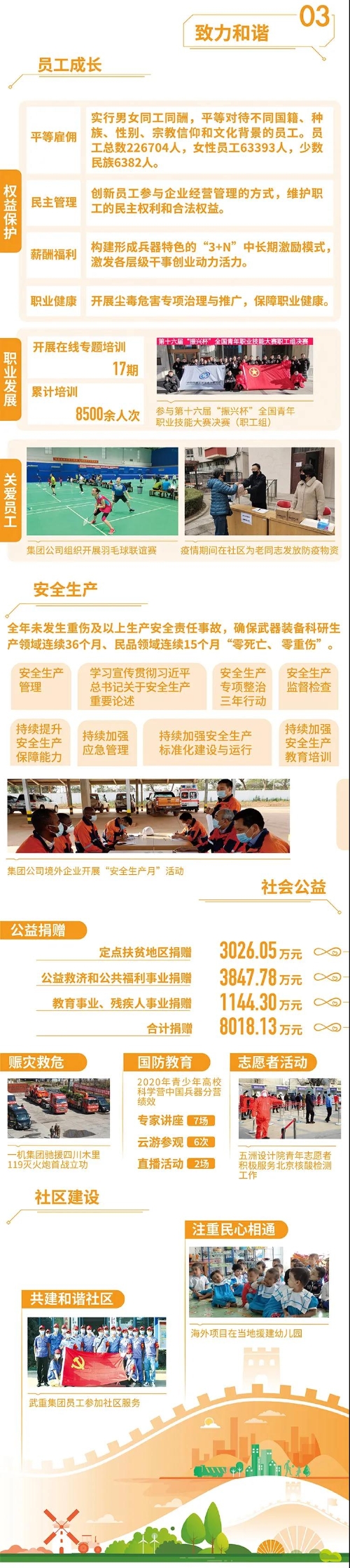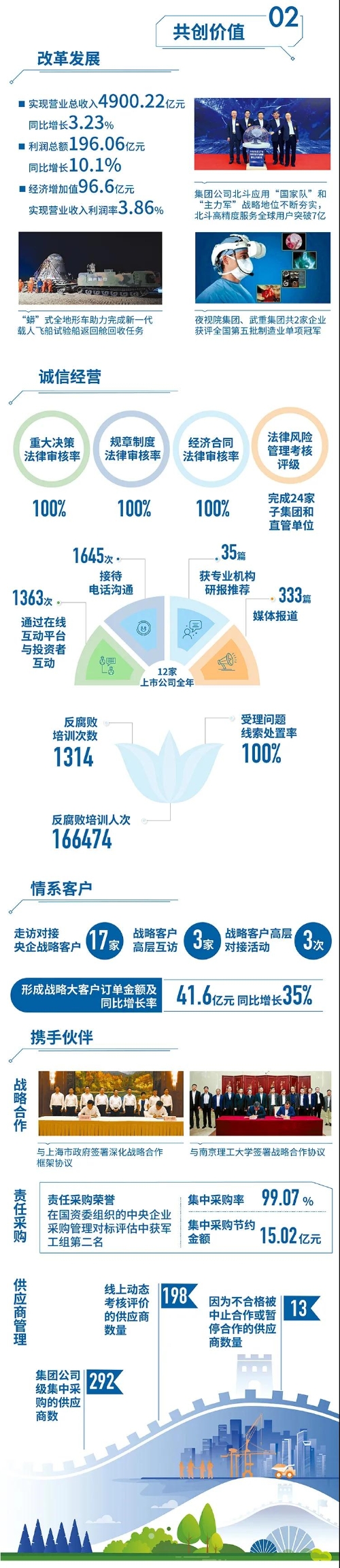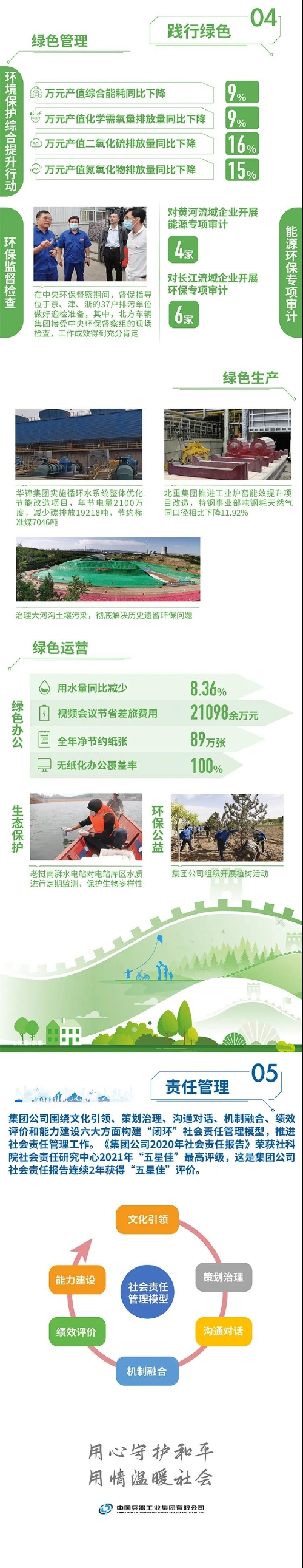 近日,國(guo)務院(yuan)國(guo)資委在(zai)京舉辦“責(ze)(ze)任(ren)(ren)(ren)創造(zao)價值,責(ze)(ze)任(ren)(ren)(ren)引領(ling)未來——中央(yang)(yang)(yang)企業(ye)(ye)社(she)會(hui)責(ze)(ze)任(ren)(ren)(ren)報(bao)告(gao)集(ji)中發(fa)布活動(2021)”,來自中央(yang)(yang)(yang)企業(ye)(ye)的(de)92份《報(bao)告(gao)》向(xiang)公眾(zhong)全(quan)面展示(shi)央(yang)(yang)(yang)企認(ren)真(zhen)履行社(she)會(hui)責(ze)(ze)任(ren)(ren)(ren)的(de)成果。兵器工(gong)業(ye)(ye)集(ji)團(tuan)(tuan)參加(jia)集(ji)中發(fa)布活動,并向(xiang)社(she)會(hui)公眾(zhong)正式(shi)發(fa)布第十二份年度社(she)會(hui)責(ze)(ze)任(ren)(ren)(ren)報(bao)告(gao)——《中國(guo)兵器工(gong)業(ye)(ye)集(ji)團(tuan)(tuan)有限(xian)公司(si)(si)2020年社(she)會(hui)責(ze)(ze)任(ren)(ren)(ren)報(bao)告(gao)》,全(quan)面披(pi)露2020年度集(ji)團(tuan)(tuan)公司(si)(si)履責(ze)(ze)實踐(jian)和履責(ze)(ze)成效。會(hui)上發(fa)布了《中央(yang)(yang)(yang)企業(ye)(ye)社(she)會(hui)責(ze)(ze)任(ren)(ren)(ren)藍皮書(shu)(2021)》,《中國(guo)兵器工(gong)業(ye)(ye)集(ji)團(tuan)(tuan)有限(xian)公司(si)(si):內化(hua)于心外化(hua)于行,打造(zao)央(yang)(yang)(yang)企責(ze)(ze)任(ren)(ren)(ren)管理表(biao)率》成功入選典(dian)型(xing)案例。 2020年,是(shi)“十三五(wu)”規劃收官之年,也是(shi)全面建(jian)(jian)成小(xiao)康社會、實(shi)現(xian)(xian)第(di)一個(ge)(ge)百(bai)年目標的(de)(de)(de)(de)決(jue)勝(sheng)之年。集(ji)(ji)團(tuan)(tuan)(tuan)(tuan)公司(si)黨(dang)組(zu)書(shu)記、董(dong)事長焦(jiao)開河(he)在(zai)報告開篇指出(chu),集(ji)(ji)團(tuan)(tuan)(tuan)(tuan)公司(si)實(shi)現(xian)(xian)了“十三五(wu)”圓滿收官,整體步入了高(gao)質(zhi)(zhi)量發展(zhan)(zhan)(zhan)軌道,呈(cheng)現(xian)(xian)出(chu)基礎更牢、動(dong)力更強、空間(jian)更大、效能更高(gao)的(de)(de)(de)(de)積極(ji)向(xiang)(xiang)上良好態(tai)勢。在(zai)“十三五(wu)”特別(bie)是(shi)近三年來(lai)的(de)(de)(de)(de)工(gong)作(zuo)實(shi)踐中,我們(men)明(ming)確了“集(ji)(ji)團(tuan)(tuan)(tuan)(tuan)公司(si)是(shi)國(guo)(guo)家(jia)安全和(he)(he)國(guo)(guo)防建(jian)(jian)設(she)的(de)(de)(de)(de)脊梁、是(shi)國(guo)(guo)家(jia)戰(zhan)略科技(ji)力量最(zui)為重(zhong)要(yao)(yao)的(de)(de)(de)(de)組(zu)成部分、是(shi)黨(dang)和(he)(he)國(guo)(guo)家(jia)最(zui)可信賴的(de)(de)(de)(de)‘六個(ge)(ge)力量’,肩負著支撐(cheng)國(guo)(guo)防軍(jun)隊(dui)建(jian)(jian)設(she)、推動(dong)科技(ji)自(zi)立自(zi)強、服(fu)務構建(jian)(jian)新發展(zhan)(zhan)(zhan)格局的(de)(de)(de)(de)重(zhong)大政治(zhi)責(ze)任和(he)(he)光榮使命,具有極(ji)強的(de)(de)(de)(de)政治(zhi)屬性,性質(zhi)(zhi)特殊、使命特殊、責(ze)任特殊”的(de)(de)(de)(de)新時代新階段職責(ze)使命,深(shen)化了對“堅持以習近平(ping)(ping)新時代中國(guo)(guo)特色社會主(zhu)義思(si)想定向(xiang)(xiang)領(ling)航,是(shi)集(ji)(ji)團(tuan)(tuan)(tuan)(tuan)公司(si)高(gao)質(zhi)(zhi)量發展(zhan)(zhan)(zhan)的(de)(de)(de)(de)根(gen)本(ben)遵循;保持貫徹落實(shi)習近平(ping)(ping)總書(shu)記重(zhong)要(yao)(yao)指示(shi)批(pi)示(shi)和(he)(he)黨(dang)中央決(jue)策部署(shu)的(de)(de)(de)(de)戰(zhan)略定力,是(shi)集(ji)(ji)團(tuan)(tuan)(tuan)(tuan)公司(si)高(gao)質(zhi)(zhi)量發展(zhan)(zhan)(zhan)的(de)(de)(de)(de)根(gen)本(ben)前提;履行好強軍(jun)這個(ge)(ge)首要(yao)(yao)職責(ze),是(shi)集(ji)(ji)團(tuan)(tuan)(tuan)(tuan)公司(si)高(gao)質(zhi)(zhi)量發展(zhan)(zhan)(zhan)的(de)(de)(de)(de)根(gen)本(ben)要(yao)(yao)求;加(jia)快兵(bing)器(qi)科技(ji)創新突(tu)破,是(shi)集(ji)(ji)團(tuan)(tuan)(tuan)(tuan)公司(si)高(gao)質(zhi)(zhi)量發展(zhan)(zhan)(zhan)的(de)(de)(de)(de)根(gen)本(ben)支撐(cheng);加(jia)強黨(dang)的(de)(de)(de)(de)領(ling)導黨(dang)的(de)(de)(de)(de)建(jian)(jian)設(she),是(shi)集(ji)(ji)團(tuan)(tuan)(tuan)(tuan)公司(si)高(gao)質(zhi)(zhi)量發展(zhan)(zhan)(zhan)的(de)(de)(de)(de)根(gen)本(ben)保證”的(de)(de)(de)(de)兵(bing)器(qi)工(gong)業(ye)改革發展(zhan)(zhan)(zhan)規律認識。 《報告(gao)(gao)(gao)》聚焦“抗疫(yi)斗爭(zheng)中(zhong)(zhong)(zhong)的(de)(de)(de)‘兵器力(li)(li)量’”,生(sheng)動展示(shi)了集(ji)團(tuan)(tuan)公(gong)司抗擊疫(yi)情(qing)的(de)(de)(de)有力(li)(li)行(xing)動,展現了集(ji)中(zhong)(zhong)(zhong)力(li)(li)量辦大事、急國(guo)(guo)家(jia)(jia)之所急的(de)(de)(de)“兵器速(su)度(du)”,彰(zhang)顯了“把一切獻給黨(dang)”的(de)(de)(de)人民(min)兵工(gong)精(jing)神和貫徹落(luo)實國(guo)(guo)家(jia)(jia)決策部署的(de)(de)(de)責(ze)(ze)任(ren)(ren)擔(dan)當。《報告(gao)(gao)(gao)》以(yi)“用(yong)心守候和平、用(yong)情(qing)溫暖(nuan)社會(hui)(hui)(hui)”為主題,從(cong)恪守本責(ze)(ze)、共創價值、致(zhi)力(li)(li)和諧(xie)、踐(jian)行(xing)綠色、責(ze)(ze)任(ren)(ren)管理五個(ge)維(wei)度(du),全面展現集(ji)團(tuan)(tuan)公(gong)司在(zai)堅(jian)持履(lv)(lv)行(xing)政(zheng)治責(ze)(ze)任(ren)(ren)、經濟責(ze)(ze)任(ren)(ren)、社會(hui)(hui)(hui)責(ze)(ze)任(ren)(ren),履(lv)(lv)行(xing)強軍首責(ze)(ze)、加(jia)強黨(dang)的(de)(de)(de)建設(she)、打(da)造國(guo)(guo)家(jia)(jia)戰略科技力(li)(li)量、推進(jin)“一帶一路”倡議、打(da)好打(da)贏三大攻堅(jian)戰、深化(hua)改革、助力(li)(li)員工(gong)成長、支持社會(hui)(hui)(hui)公(gong)益事業(ye)、提升社會(hui)(hui)(hui)責(ze)(ze)任