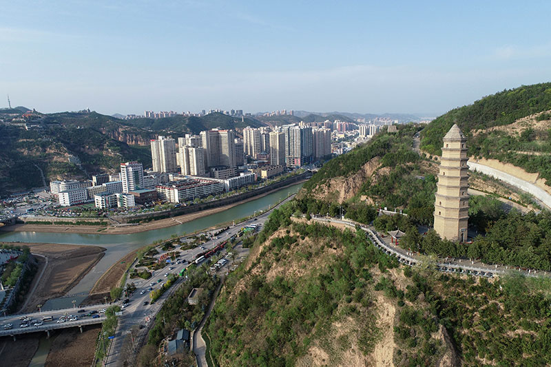 這是(shi)4月22日拍攝的延安市寶塔山(無(wu)人機照片)。新(xin)華社記者(zhe) 張博文 攝