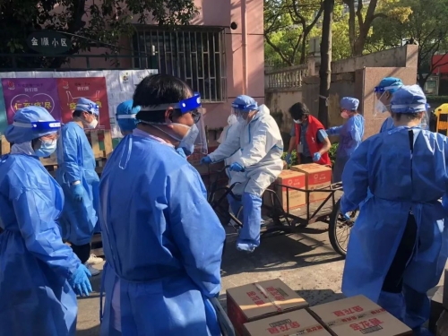 為解決(jue)物資(zi)分發量大、社(she)區工(gong)(gong)作人員(yuan)不足的問題,在(zai)吉林長春,東北工(gong)(gong)業集團奧威(wei)公司組建志愿(yuan)服務隊,下沉社(she)區開展志愿(yuan)服務活動。“物資(zi)到了,大家到廣場(chang)集合……”早晨(chen)6點,志愿(yuan)者們(men)對物資(zi)進(jin)行卸車、清點、消毒,并派送到社(she)區各(ge)個(ge)單(dan)元,有(you)時他(ta)們(men)連續七(qi)八個(ge)小時工(gong)(gong)作,只為盡早把物資(zi)送到居民手(shou)中。