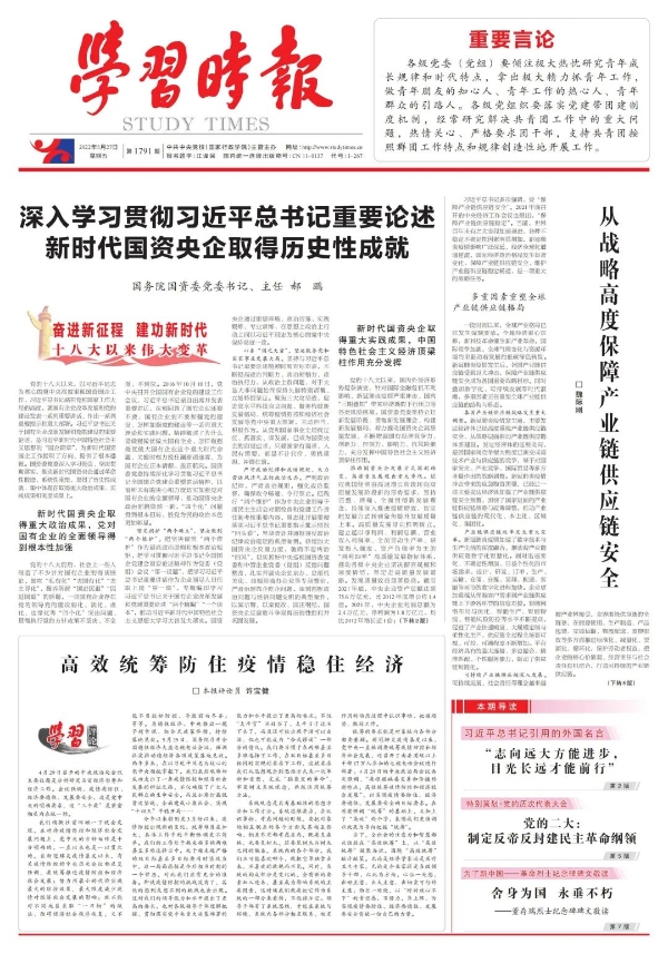 《學習時報》刊發郝鵬署名文章:深入學習貫徹習近平總書記重要論述 新時代國資央企取得歷史性成就 |